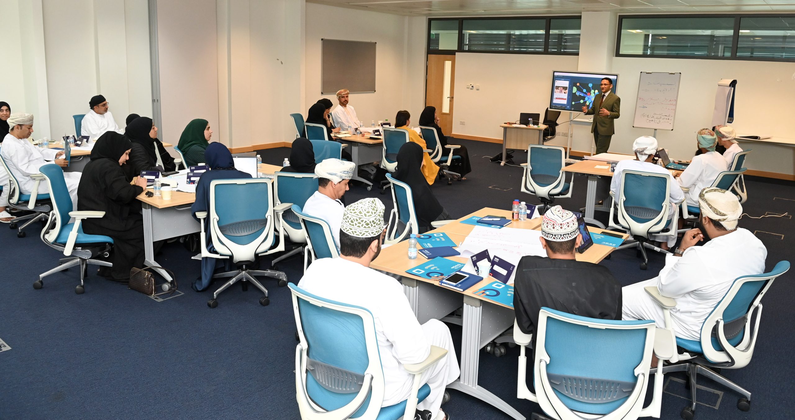 Media and Press officers from Omani ministries and companies attended a five day workshop on talking to the public via social media. Attendees gained new skills and practiced new techniques on using social media to understand public opinion, raise awareness, plan campaigns and tackle trolls. The workshop was delivered by Ahmed Elsheikh, Digital Media Consultant.